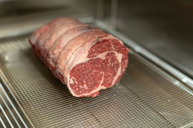 Dry brine the meat by covering prime rib liberally with kosher salt.